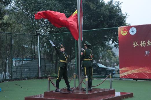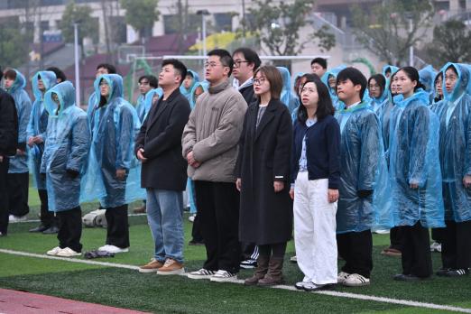 随着国歌的奏响,鲜艳的五星红旗冉冉升起,在场师生全体肃立,向国旗行注目礼,高唱国歌,嘹亮的歌声在田径场上空久久回荡,为“开学第一课”拉开庄严序幕。