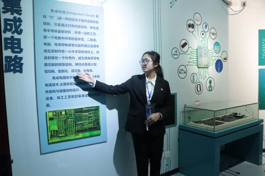 永川校区在升旗仪式结束后,师生代表们共同前往集成电路史馆参观学习。在珍贵的历史资料前,大家直观感受到了我国集成电路产业从无到有、从弱到强的发展历程,更坚定了城科学子为强国建设贡献青春力量的决心。
