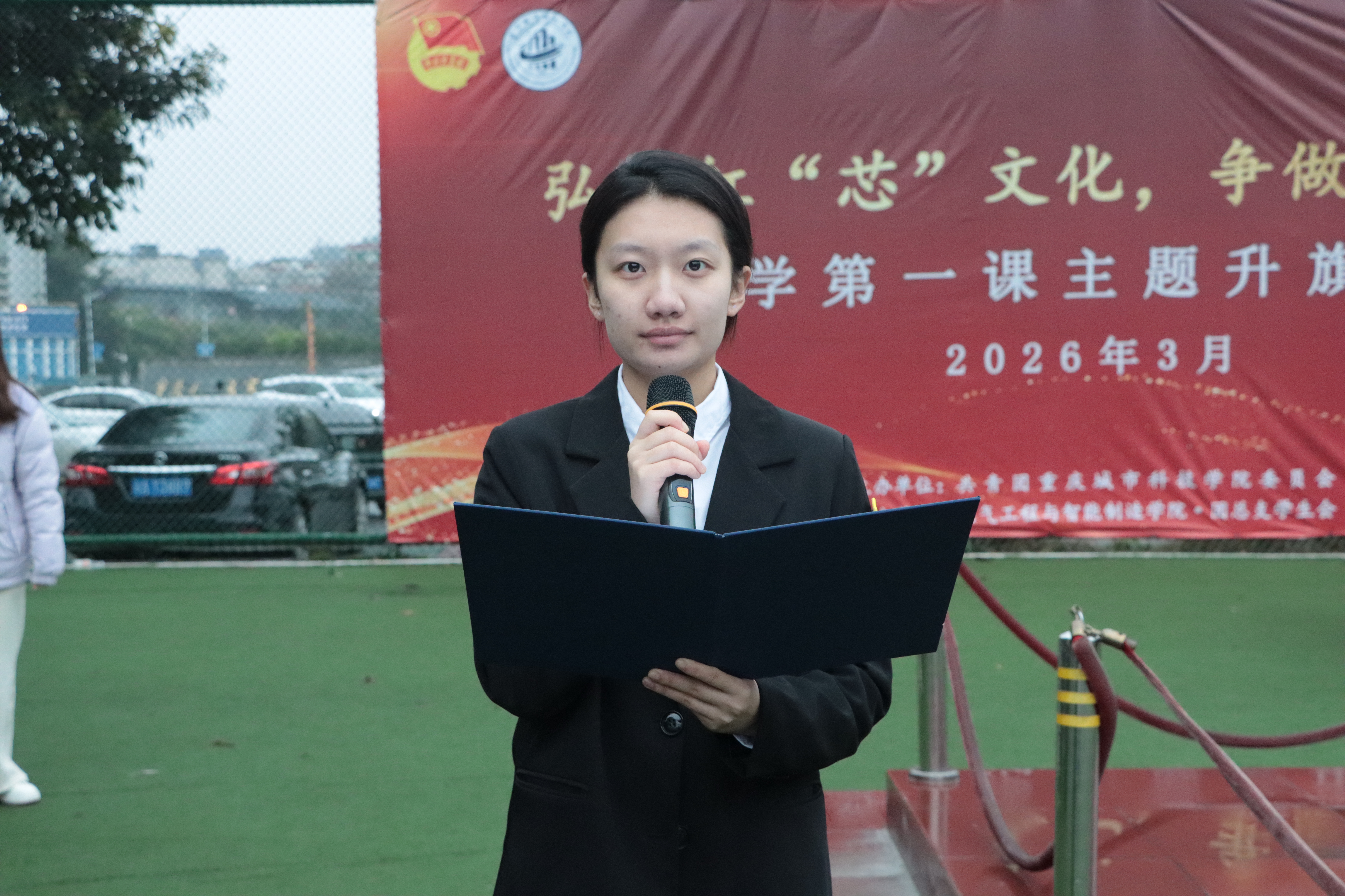 为深入开展思政教育,厚植学生爱党、爱国、爱校情怀,推进“每月一学”思想引领行动,2026年3月16日上午7:30,共青团重庆城市科技学院委员会在永川、巴南两校区田径场同步举行“每月一学”主题教育活动——“开学第一课”主题升旗仪式,由电气工程与智能制造学院、艺术与传媒学院承办。