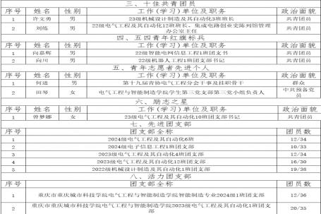 4月27日,电气工程与智能制造学院依据共青团重庆城市科技学院委员会《关于开展2025年“五·四”评优表彰工作的通知》(重庆城科校团〔2025〕13号),开展“五·四”评优表彰工作。经学生书面申请并提交材料,辅导员核实,学院团总支民主评议小组秉持公平、公正、竞争、择优原则现场评定,现已产生校级初审名单并予以公示。此次评优旨在表彰先进,激励青年学生积极进取,发挥模范带头作用,为校园文化建设和自身成长注入动力。