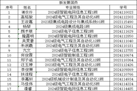 为深入贯彻落实从严治团要求,进一步加强团组织建设,规范团员管理,提升团员政治觉悟与综合素质,重庆城市科技学院电气工程与智能制造学院依据《中国共产主义青年团章程》和《中国共产主义青年团发展团员工作细则》相关规定,有序开展新团员发展工作。此次发展团员工作遵循严格的程序与标准,经个人积极申请、辅导员推荐、团课培训以及现场答辩等一系列综合考核环节,对学生的思想政治表现、道德品质、学业成绩及社会实践等方面进行了全面考察。经过层层筛选,学院拟定谢佼伶等17名学生为第六期新发展团员。此次新团员的发展,为学院共青团组织注入了新鲜血液。学院将以此次工作为契机,持续加强团员队伍建设,不断提升团组织的凝聚力和战斗力,激励广大青年学生积极投身于学习与社会实践,为实现中华民族伟大复兴的中国梦贡献青春力量。