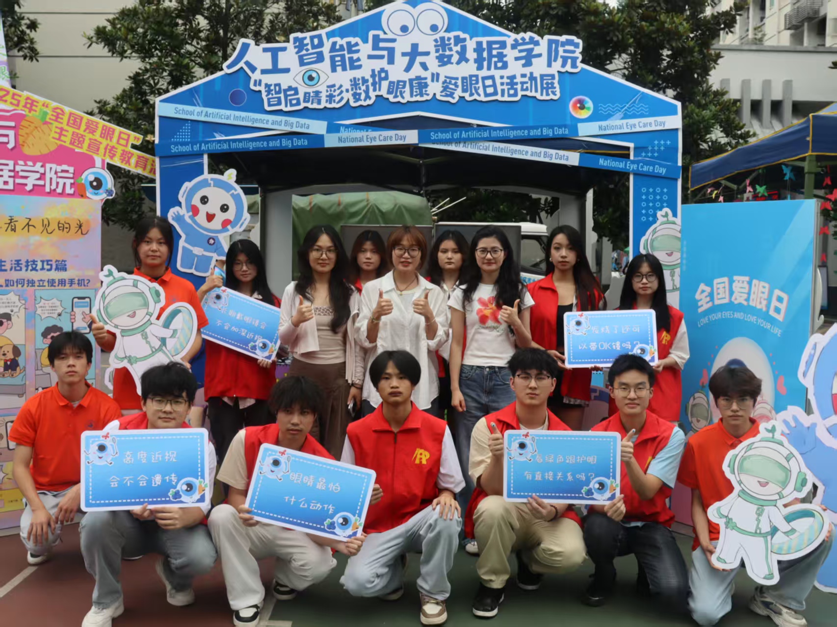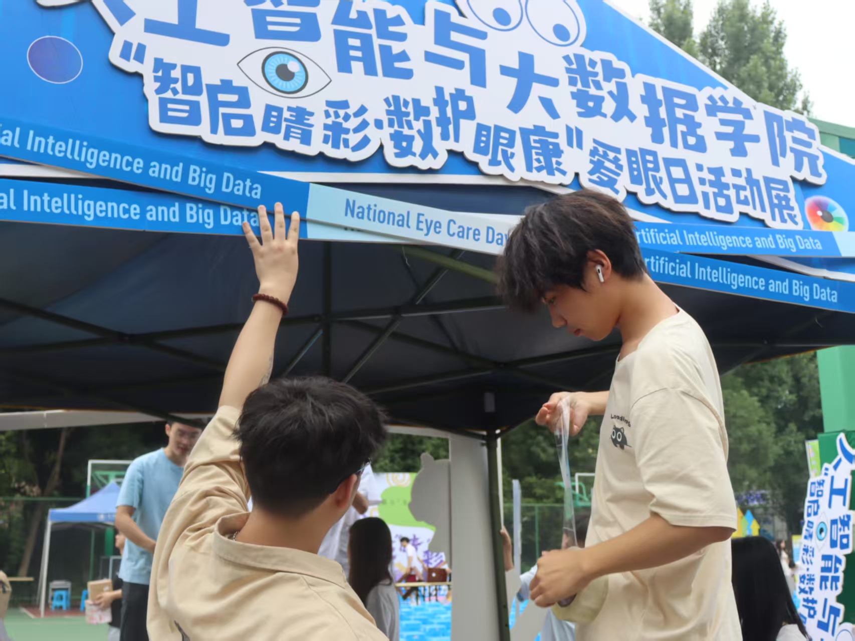 6月4日,为积极响应国家爱眼护眼的号召,提升大学生眼部健康意识,传播科学用眼知识,重庆城市科技学院于永川校区ab栋篮球场开展爱眼日主题系列活动,人工智能与大数据学院与其他各二级学院共同参加。活动现场热闹非凡,同学们积极参与活动,在活动中收获爱眼知识,感受校园文化魅力。此次爱眼日活动,以趣味融合知识、以关怀传递理念,为师生搭建起关注眼部健康的互动平台,助力校园健康文化建设。未来,学院将持续开展多元护眼活动,深化爱眼宣传,鼓励更多同学重视眼部健康,用明亮双眼拥抱美好明天。